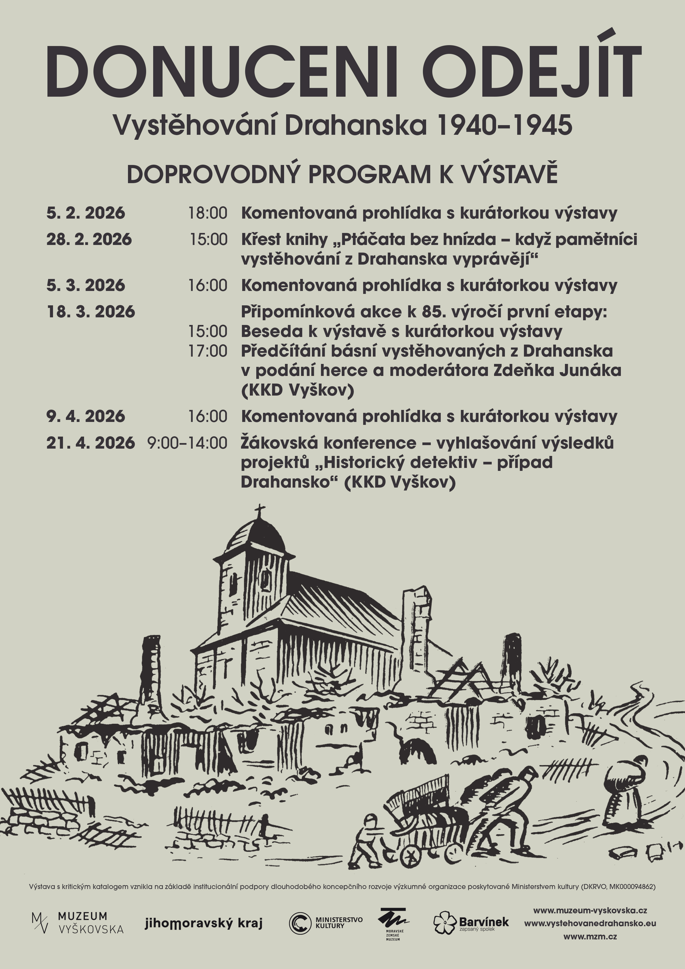 Zveme vás na výstavu „DONUCENI ODEJÍT – Vystěhování Drahanska 1940–1945“, ve které se Dana Vedra, historička Moravského zemského muzea v Brně, věnuje opomíjenému tématu našich novodobých dějin.