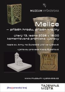 Zveme vás na komentovanou prohlídka výstavy Melice – příběh hradu, příběh krajiny, která proběhne v kaple sv. Anny na Dukelské ulici ve Vyškově. Výstavou, která vznikla v rámci projektu Tajemná místa, jehož cílem je představit unikátní archeologické nálezy ze sbírek muzeí Jihomoravského kraje, návštěvníky provede archeoložka Klára Rybářová.