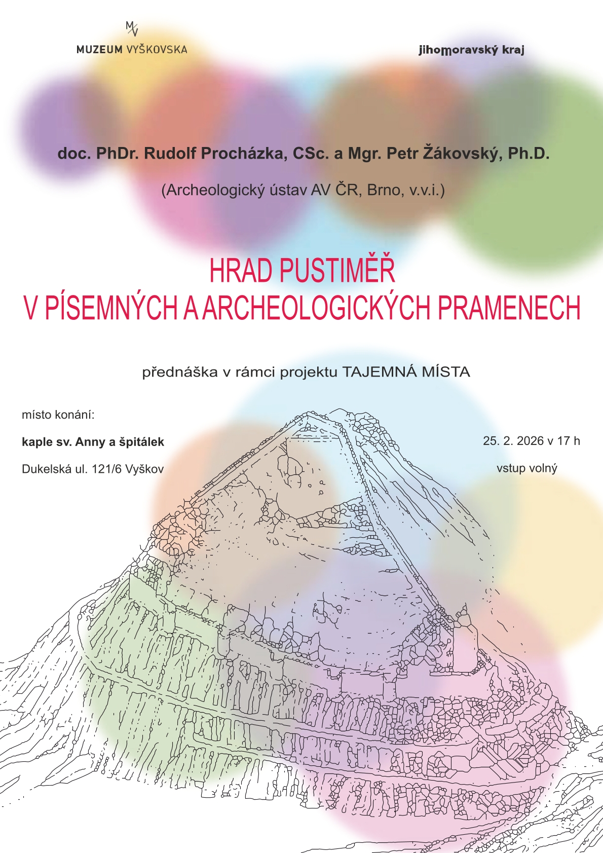Zveme vás na přednášku doc. Phdr. Rudolfa Procházky, CSc. a Mgr. Petra Žákovského, PhD. z Archeologického ústavu Akademie věd Brno na téma Hrad Pustiměř v písemných a archeologických pramenech. Hrad Melice existoval pouze necelé století a jeho krátkou existenci dramaticky ukončily husitské války. Jeho dnešní skromné zříceniny nenasvědčují tomu, že se kdysi jednalo o jeden z nejvýstavnějších a nejhonosněji vybavených hradů na území Moravy a Čech.