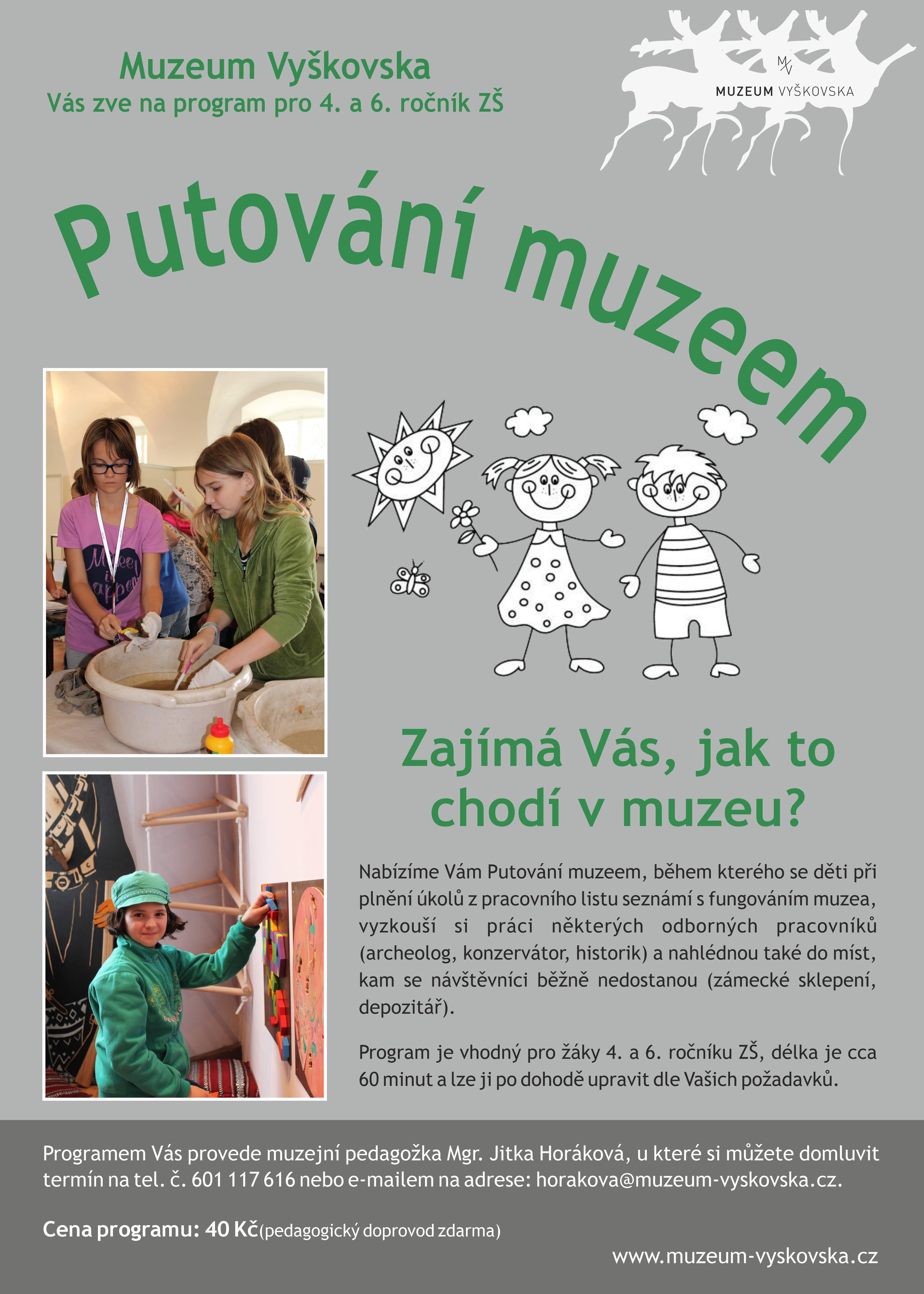 Programem žáky provedou Mgr. Eva Palupová a Mgr. Jitka Horáková. Objednávat se můžete na e-mailu: horakova@muzeum-vyskovska.cz nebo na tel. č. 601 117 616.