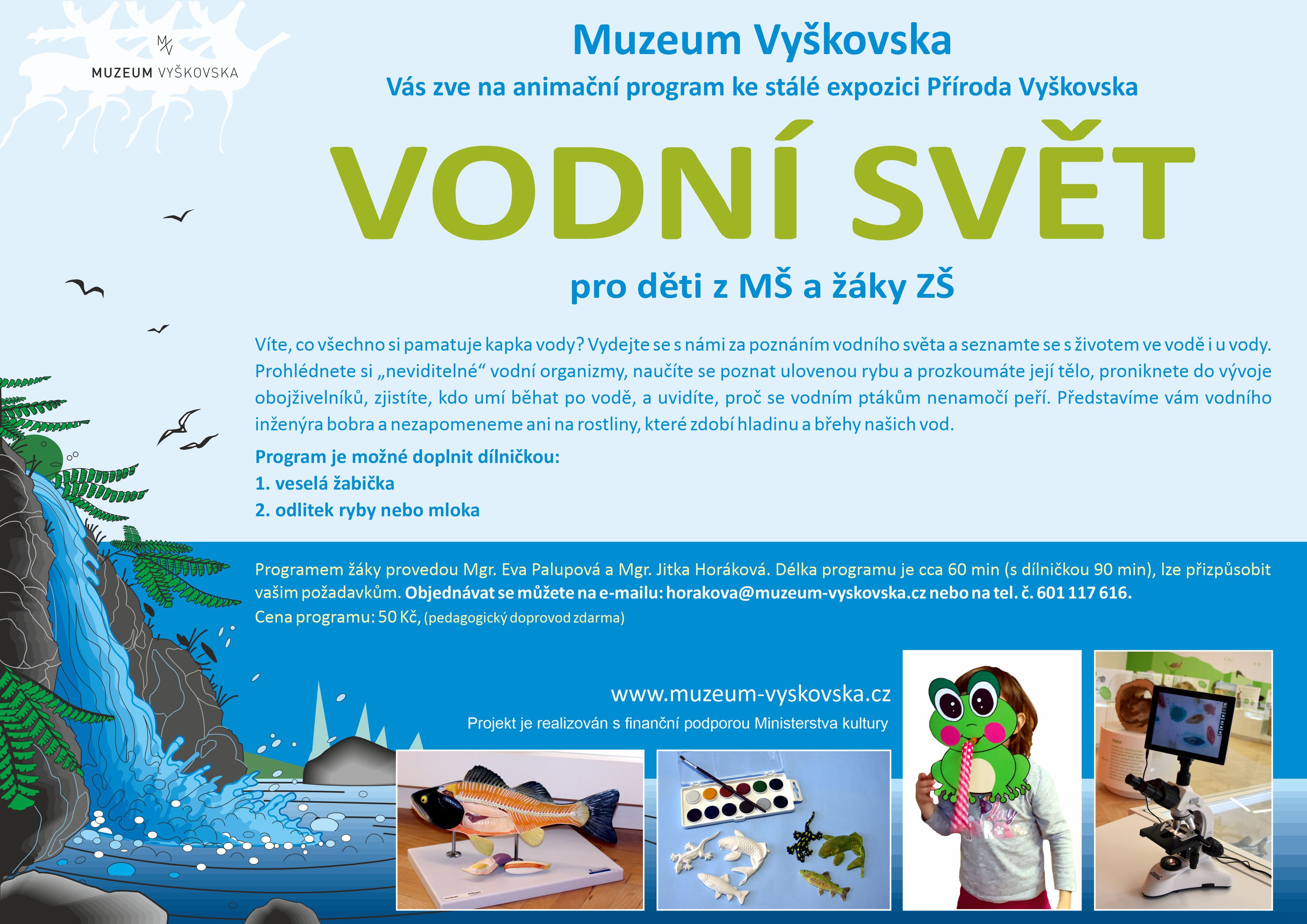 Víte, co všechno si pamatuje kapka vody? Vydejte se s námi za poznáním vodního světa a seznamte se s životem ve vodě i u vody. Prohlédnete si „neviditelné“ vodní organizmy, naučíte se poznat ulovenou rybu a prozkoumáte její tělo, proniknete do vývoje obojživelníků, zjistíte, kdo umí běhat po vodě, a uvidíte, proč se vodním ptákům nenamočí peří. Představíme vám vodního inženýra bobra a nezapomeneme ani na rostliny, které zdobí hladinu a břehy našich vod.